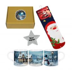 Коледна ПВЦ топка с дървена фигурка, късмет и коледни чорапи Дядо Коледа с очила.Късметите и формата на фигурката са на случаен принцип!Чорапите са с универсален размер от 37 до 43 номер.Размер на топката - Ф 10 см.Цената е за 1 брой /една топка/...